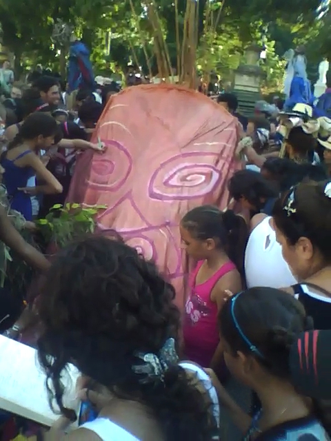 Children and adults rushed over to the Tarasca, and after the ten minutes given to them they had a list of what they wanted to disappear. What they wrote included hate, illnesses, pain, bureaucracy, war, hunger, capitalism, earthquakes and tsunamis, opportunism and fear. But some people also wrote “Down with homophobia” and “May all of us travel freely across the country and around the world.”