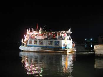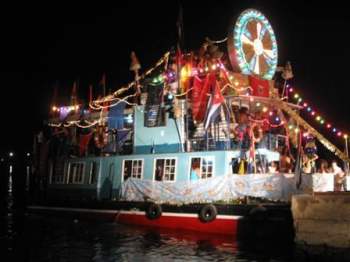 This year it was done in a new fashion: a parade of boats decked out as “floating floats” were exhibited before the public and a jury of specialists to determine which should be awarded for their design or originality.