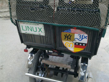 A coat of arms that speaks to us of sports, politics, technology and, why not, of an entire dimension of the owner’s perception of the world. Next to it, I saw a graphic reference to the Linux operating system and, beneath it, the Playboy bunny.