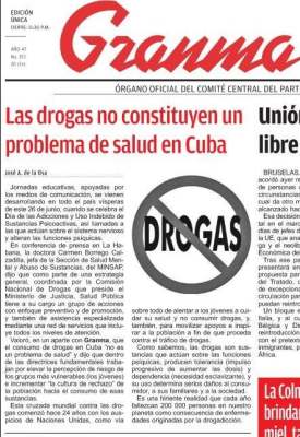 Today I’m going to refer to an article concerning drugs that came out a couple weeks ago (June 25) in the Granma newspaper, the “official organ of the Cuban Communist Party.”