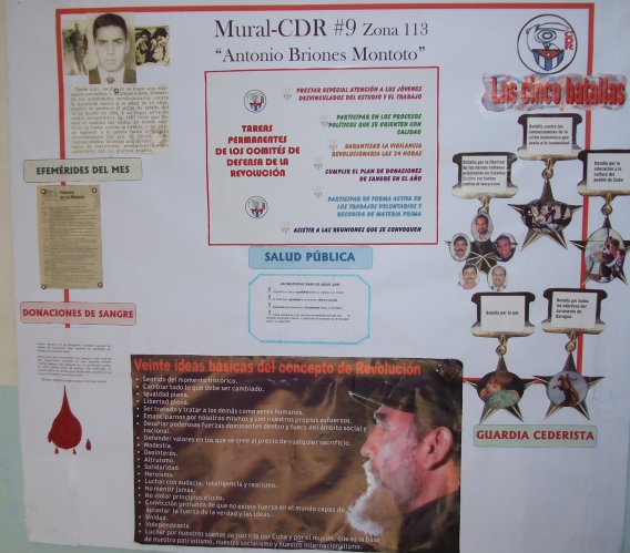 In the preceding period when we weren’t so “developed,” but were indeed more fervent, it was not strange for neighbors to take the initiative to fill up the CDR bulletin board with their own personal initiatives: revolutionary phrases taken out of some book or from their own inspiration, hand-drawn caricatures of “imperialist Yankees,” photos of martyrs cut out of a magazine, winning drawings from some local children’s competition celebrating historical date, etc.