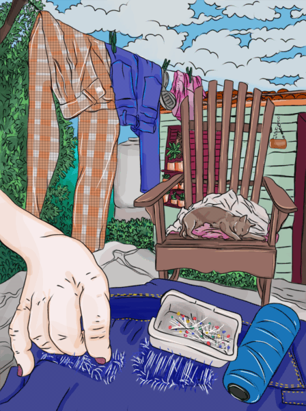 I’m used to living with the rope around my neck and a sewing needle in my fingers. Sometimes I believe I’ve stitched up a tear, but then, before the seam takes hold, a new rip appears. I mend clothing, hopes plans.