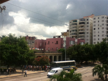 Unlike working class Cubans my decision has nothing to do with finances. I can easily pay either, and I almost always opt for the maquina, a 50 cent ride. However when I arrived to the bus stop, where the maquinas also pick up their clients, I met one of my professors.