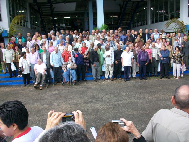 The doctors arrived in the same undistinguished yellow school busses that are used by workers and students. As the smoke belching machines quieted their growling motors and the old doctors made their way into the parking lot jubilation ensued. Old eyes squinted behind glasses to make out faces of comrades that had weathered decades of life in the Caribbean. Embraces were long and frequent.