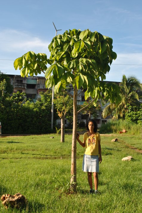 It’s now four weeks since we planted on Clara’s property. Up to now we’ve sowed 34 saplings: locust, yagrumas, custard apple, guanacaste, ceiba and two very beautiful trees whose names we don’t know (we found seeds at the Case de Asia, in Old Havana, and I dedicated one planting to my friend Abel; the other one was from a tree at the Mills Estate whose bark is mustard colored).