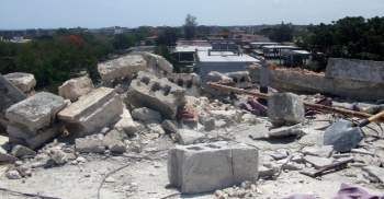 Feliz, the new delegate of Popular Power (city council) is the sole one who has shown an interest in this problem that affects many buildings in Alamar. Thanks to his efforts we have another crew now working on the roof – after 15 years of leaking. They have now knocked down the parapet and have begun constructing a new one. At least they’re off to a good start, which shows that it’s never too late if the job is done right.