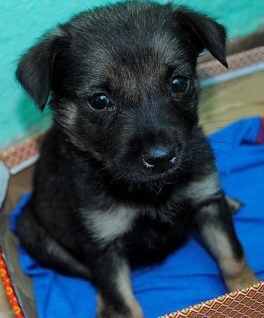 It has now recovered from a prolaxo caused by the extreme bouts of diarrhea that it had when we picked it up.  It also had an illness known as puppy mumps, but now it’s at the stage where this is going away, though we’re still trying to get it to recover from a powerful attack of anemia.   Over these past two weeks it has grown; the box where it sleeps is already too small.