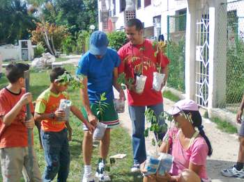 I know one can’t. And the idea of being free, that no one can buy me, that too is beautiful and it makes me rejoice. That’s why I devote time to sowing, even when I have other important things to do. For that reason, a few weeks ago I spent an entire Sunday in the Reparto Electrico neighborhood sowing alongside Erasmo, Jimmy, Mario, Yudith, Yoel, and a troop of kids who always work diligently together with us. We planted trees at the community’s cultural center, at the school and on the edge of the highway.