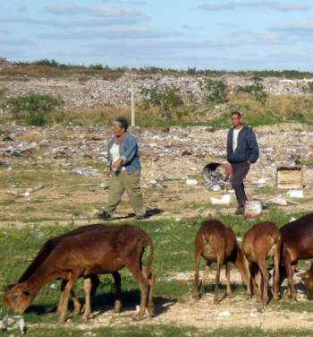 Gigantic trash dumps are physical evidence of this state of things. In Havana we have three major ones, but the largest is the one on 100th Street. According to information we exchanged before venturing to enter the dump, residents of the capital surpass the average amount of garbage produced by each resident on the island. People in Havana produce 1.5 pounds of waste daily, and it’s still not known how this problem is going to be addressed.