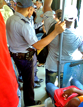 There’s no sense in making a comparison with Brazil or any other country, but I feel uncomfortable with armed persons by my side. These policemen were not “working”, they were not “aware”. Usually, they are just another passenger in the bus, just as distracted as I am.
