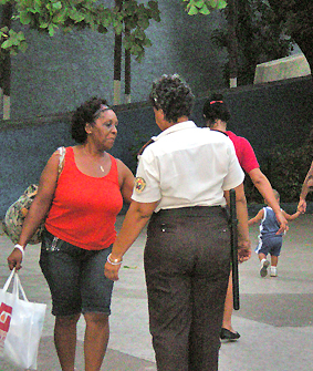 Perhaps it is only prudent that security guards at Copelia carry night sticks. If anyone attempted to “jump the line” , for example, the rest of those waiting would probably lynch the offender! Weapons are symbols of authority, but police who are truly professional seldom are called upon to use them. Instead, they have other, more subtle, methods of persuasion. A few years back, while travelling on the “Toonerville Trolley” (i.e. the tren Hershey), a boorish, alienated youth was harassing two adolescent girls; a gentleman intervened on their behalf, and the boy started insulting him and spoiling for a fight; the situation threatened to escalate to fisticuffs–or worse–but a policeman intervened. Don’t know exactly what he said–perhaps the promise of a stretch cutting cane in a punative labor batallion–but the boy calmed right down, and not a peep was heard out of him during the rest of the trip to Matanzas!