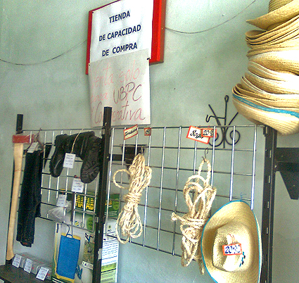 The prices at this type of establishment are quite low, and because of this I wanted to buy a pair of rubber boots after purchasing my bags of fertilizer.  However, this wasn’t possible. Such articles were “only for sale to UBPCs* and Cooperatives.” The same restrictions exist on rope, straw hats, axes, fumigation backpacks and other supplies.