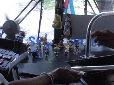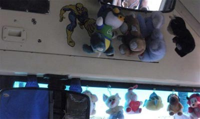 So people! This is how bus drivers — while trying to make more bearable their task of transporting us daily — fill up their work spaces and uncaringly share them with us.
