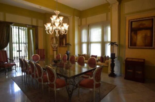 Old chronicles and descriptions mention interiors with marble or fine-wood floors, ceilings with detailed moldings, and large rooms designed for receptions. The De Armas family and later tenants maintained a stately taste that combined the functional with the decorative: hanging lamps, boiseries, and furnishings that imported the gesture of the European salon without abandoning tropical freshness. Today, although some of the original furnishings no longer exist, the interior design remains a historical canvas: its spaces preserve the proportions and pathways that speak of the social life of another era.