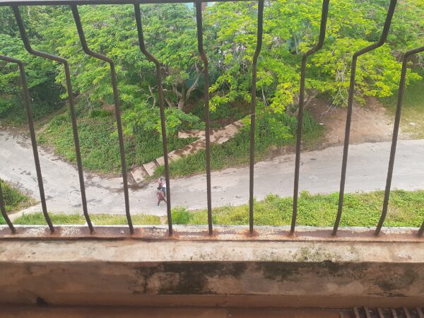 The seduction of that railing, that left us hanging on the edge of space when we leaned against the low wall. Our gaze that struggled to see over these ugly, identical, and monotonous buildings to the ocean… The profuse vegetation in a clamor of beauty and freedom.