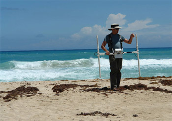 Some of the equipment he works with in locating the buried ship has been sent by the National Geographic Society, but the US embargo prevents additional equipment and money from being provided.