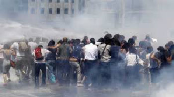 MUAMMER GÜLER: [translated] There have been 939 detentions in various cities. Some of them have already been released, and some of them are arrested pending trial. During these protests, 26 police officers and 53 civilians were wounded. Nineteen of them are from Istanbul. One of the wounded is in critical condition.