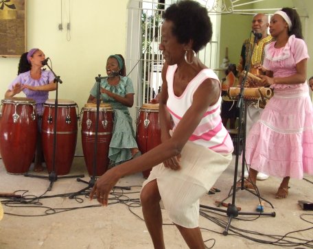 The audience, made up of Cubans and foreigners alike, interacts with the artists in a pleasing way; the music unites those people present with different forms of rumba: columbia, solar and guaguancó.