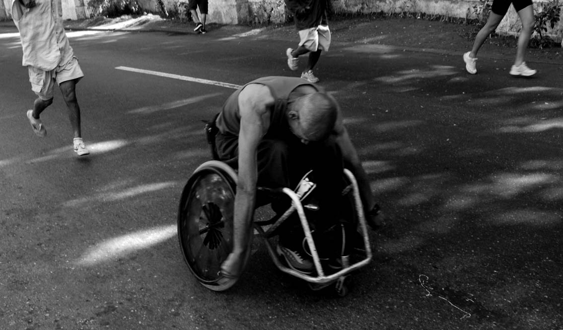 At ten in the morning the whistle sounded the start. People in wheelchairs, with canes, on bicycles, carrying colorful flags and posters —everyone with lots of laughter— advanced to the beat of the applause from the crowd swarming around them to see them off and to boost their spirits.