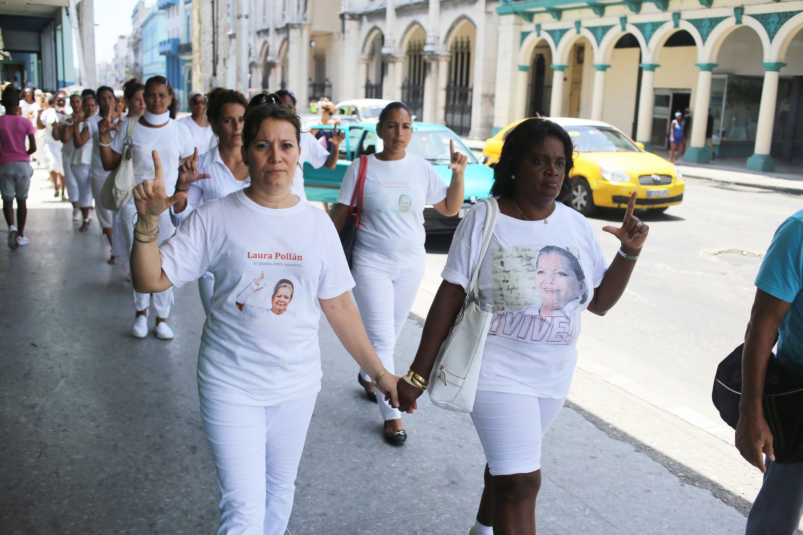 | Laura Labrada Pollán and her followers march in Havana |