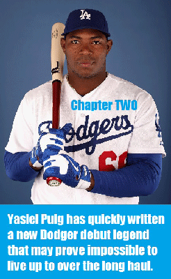 If that was not enough for a truly stunning curtain-lifter, in Game 2 the new “Cuban Cannonball” (I am certain something like that will catch on with the LA media soon enough) homered twice, collecting three hits and a game-high five RBIs to become the first Dodger since Spider Jorgensen back in 1947 to turn that trick (knocking home five runners in his first two outings).