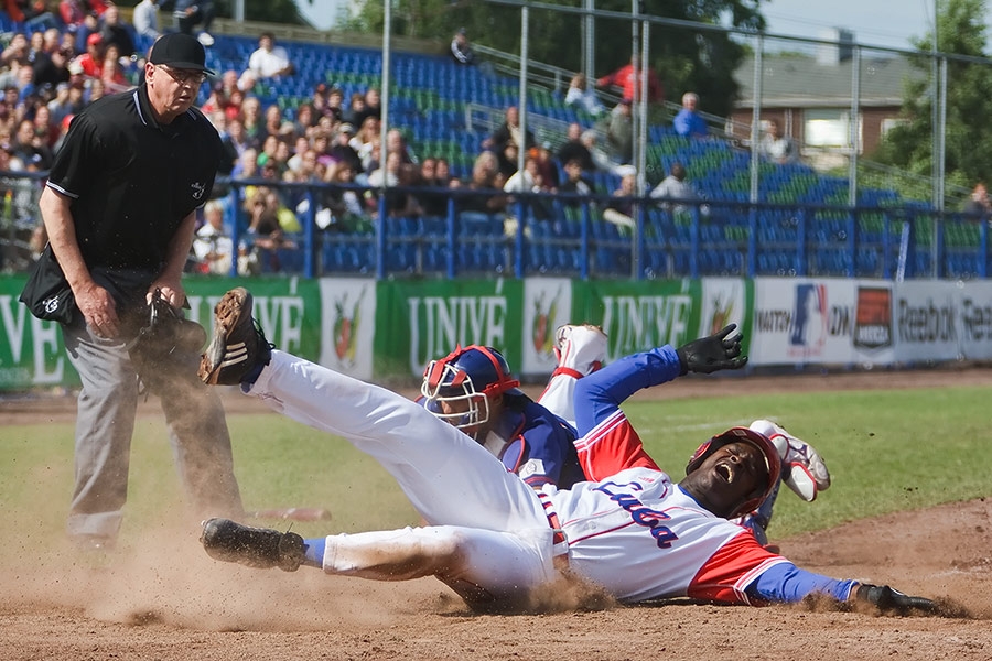 Questions have been raised by some of my Dutch press colleagues here in Haarlem about an earlier published statement of mine that the Holland Honkbal league (honkbal = home ball = baseball) was in fact professional in stature. This same issue has also often been raised about the Cuban League itself and has drawn comment on this website from time to time. Cuban ballplayers are by every reasonable standard “professionals” even if those standards allow no room for considering the size of the athlete’s paid salary. Cuban Leaguers are indeed paid, they are full-time ballplayers, and they devote their full energies to practicing their chosen profession. When asked about his “amateur players” during a press conference at the first World Baseball Classic, manager Higinio Velez appropriately quipped that school teachers in North America are not considered “amateurs” just because they earn only a tiny fraction of what rock stars or big leaguers demand for compensation. The Dutch leaguers do fall into a slightly different category, since they are not technically full-time athletes and do hold other employment during a league season in which they play only three days weekly. But they are indeed paid to play, and they are entirely “professional” in their approaches to training and performance; they are also under financial contract to specific league teams, and their expenses for international tournament play are entirely covered by the Dutch Baseball Federation. For my money, they are indeed professionals.