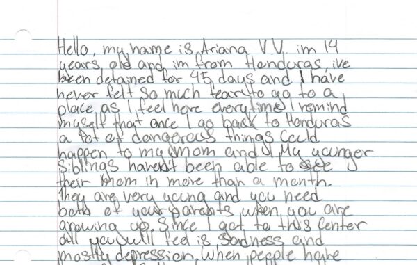 “My younger siblings haven’t been able to see their mom in more than a month,” she wrote. “They are very young and you need both of your parents when you are growing up.” Then, referring to Dilley, she added, “Since I got to this Center all you will feel is sadness and mostly depression.”