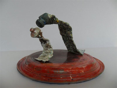 MS: Basically these pieces come from the recycling of painting materials, things that aren’t used any more …paint tubes or palettes, for instance. As I paint, I keep all those objects that contribute to the realization of a painting but then disappear.