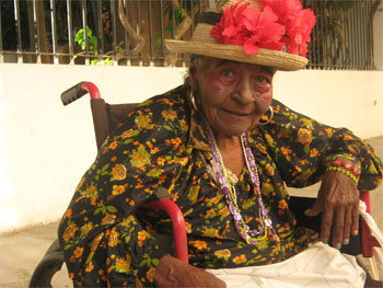 Esther: No, I have circulatory problems, and that’s how I lost my legs.  I’m not on a special milk diet or anything, but Eusebio has helped me a lot.  He gave me this “car” and a bed with a mattress probably big enough for four people.  I adore that man and my country.  I have everything I need here.