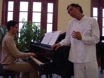 In my first five years in Cuba, I was connected to the “Camerata Vocale Sine Nomine” under the baton of maestro Enrique Filiu.  There I improved my singing technique, which continues to be in a process of development.  Together with the group I was able to meet the director of the early music group “Ars Longa”: Teresa Paz, who shared with me her knowledge of early vocal technique and on several occasions the concert hall in Paula Church, where I was able to give my first recital, “Recuerdos de Amor Recuerdos de Amor,” with pre-classical and classical arias directed and assessed by one of her best baritones, Elier Muñoz.  Those were to some measure the first people who I met who gave me direction.  In addition there were other maestros like the tenor Alberto Palanca, a great person who on occasion was in my recitals and offered me his singing secrets for better vocal performance.
