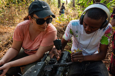 Emma: Our cameraman, Barmy (his real name is Lansana) grew up in the street due to the war. Because the neighbors knew that he was a smart kid, they would give him money for his school fees, because he was like the hope of the community. In Mukpangumba, they had no school untilrecently. Salomon, whose father died in the civil war, also talks about how the community helped his family pay for his studies, so he could learn English and become the voice of the community when anyone came from outside.