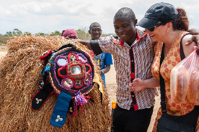 Sergio: The reception the first time that I went to Mukpangumba will stay in my mind forever. I had walked two miles in the heat, carrying my things, without knowing what to expect. Then all of these children came running. I began to hear the drums. When you finally reach the soccer field, they are all gathered there for the welcoming ceremony. The people danced with guano masks. It was very spontaneous. I don’t like to dance and I don’t know how, but that day I had to do it.