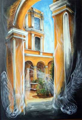 This is especially apparent in my most recent work. I’ve been creating “Detalle colonial” (Colonial Detail), where the out-of-date, nostalgia, eighteenth-century legends, the details of a landscape carved by time, among other brushstrokes of the town, have seized my imagination and spring up in the paintings and result from this evolution of Trinitarian nuances.