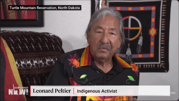 We’re continuing with our conversation with longtime Indigenous activist Leonard Peltier in Belcourt, North Dakota. I spoke to him there on his 81st birthday weekend on the Turtle Mountain Band of Chippewa Cree Reservation. He was released in February from the federal prison in Florida after nearly half a century behind bars.