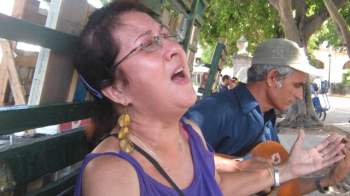 Maria: People sometimes leave handbags or cameras in unguarded places and we warn them to hang onto them… But our principal mission is to promote Cuban music. Traditional music has gotten lost, that music that is so rich that we have here in Cuba… I should tell you that I also sang in churches.