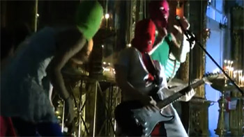 AMY GOODMAN: “Putin’s Glamour Burns” by Pussy Riot, here on Democracy Now!, democracynow.org, The War and Peace Report. I’m Amy Goodman. Three members of the band Pussy Riot have spent the last six months in prison for staging a protest against Russian leader Vladimir Putin inside an Orthodox cathedral. On Friday, the group was awarded the LennonOno peace award by the artist and activist Yoko Ono.