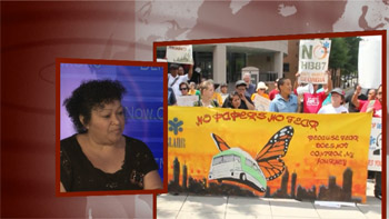 LETICIA RAMIREZ: It was Arpaio’s trial. We sat on the street. We told Arpaio that we were undocumented and unafraid. That was the first time that I came out of the shadows, because I think it was—it was time for me to tell the world that I’m not afraid anymore, that I want to defend my community, and I’m proud to be undocumented. I’m not ashamed, because that’s what we need, to the community be together and to have that unity.