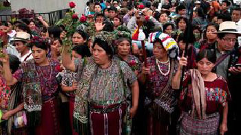RIGOBERTA MENCHÚ: [translated] It’s a very big day for Guatemala. It’s a very big day for those of us who have defended our lives in difficult circumstances, very painful circumstances of great isolation, of exile. It looks like our period of pain is ending, because we hope that from now on we will be accepted by Guatemalan society, in our polarized society, the society that carries the burden of past genocide on their backs.
