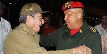 Cuban President Raul Castro accompanied Chavez to Havana’s Jose Marti International Airport.