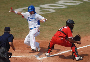 Cuban catcher Ariel Pestano in a game against South Korea.