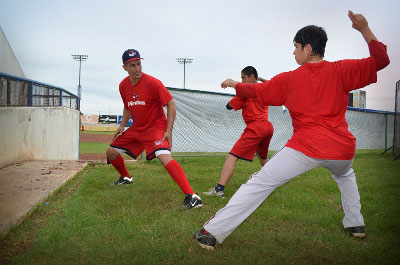 ARIEL PESTANO AYUDA A PROSPECTOS DE PIRATAS A MEJORAR TÉCNICA DE CATCHEO.  Foto: http://www.campeche.com.mx