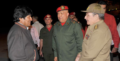 HAVANA TIMES, Sept. 18 — Venezuelan President Hugo Chavez and his Bolivian counterpart Evo Morales arrived in Cuba on Saturday night. They were welcomed at the Jose Martí International Airport by Cuban leader Raul Castro.