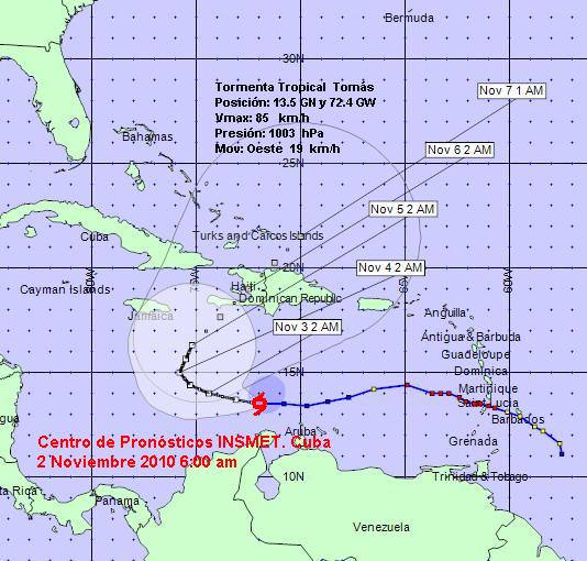 HAVANA TIMES, Nov. 2 — The Haiti Libre website reported Monday (see below) on the preparations being taken as Tropical Storm Tomas churns in the central Caribbean en route for a projected landing in Haiti or the Dominican Republic by Friday or Saturday.