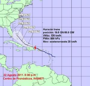 HAVANA TIMES, August 22 — Hurricane Irene has inclined its course near the north coast of Hispaniola Island (Dominican Republic and Haiti) and the threat of a direct hit to eastern Cuba is now considerably less than earlier projections.