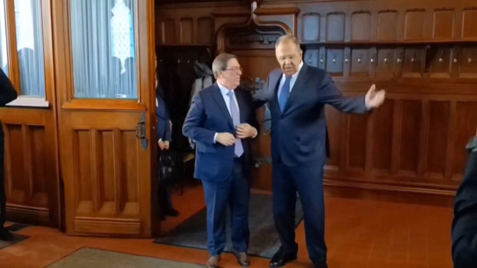 In Moscow, Cuba’s foreign minister met Wednesday with top Russian officials, including Russian President Vladimir Putin, who pledged his support to the island nation. Russia’s foreign minister Sergey Lavrov urged the U.S. to end its blockade and oil embargo, which has left Cuba facing blackouts and severe fuel shortages. This is Cuba’s foreign minister Bruno Rodriguez.