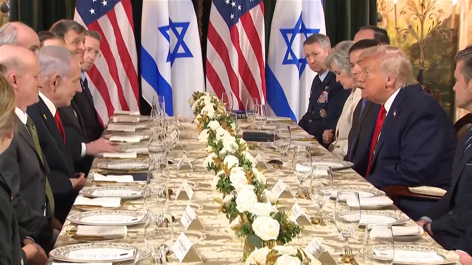 President Trump has expressed support for Israel’s threats to launch new attacks on Iran. Trump’s remarks came as he hosted Israeli Prime Minister Benjamin Netanyahu at Mar-a-Lago. It was the fifth visit by the Israeli leader to the U.S. since Trump retook the White House. Responding to Netanyahu’s claims that Iran is rebuilding its nuclear industries following U.S. and Israeli attacks last summer, Trump said, “We’ll knock the hell out of them.”
