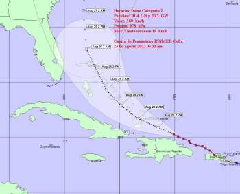 HAVANA TIMES, August 23 — Hurricane Irene has gained in strength as its projected path is taking it further away from Cuba.
