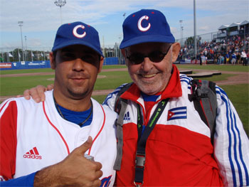The author with Ismel Jiménez at the 2012 Haarlem Baseball Week