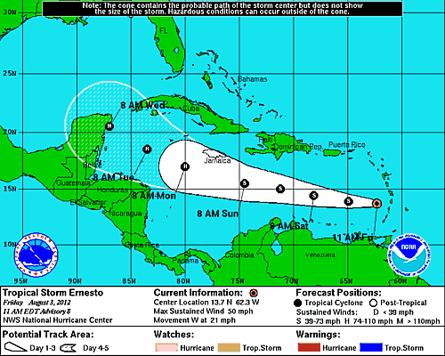 TS Ernesto. Friday August 3, 11 am EDT from the National Hurricane Center.
