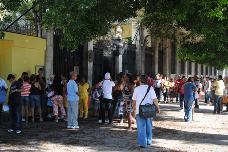 Line outside the Spanish embassy in Havana. Photo: Ihosvanny